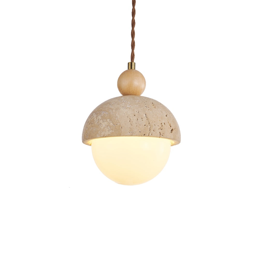 Wood, Stone & Glass Pendant Light. 15cm Diameter. 17cm Fixture Height. Bulb: G9 x 1. Bulb not included. 220/240V