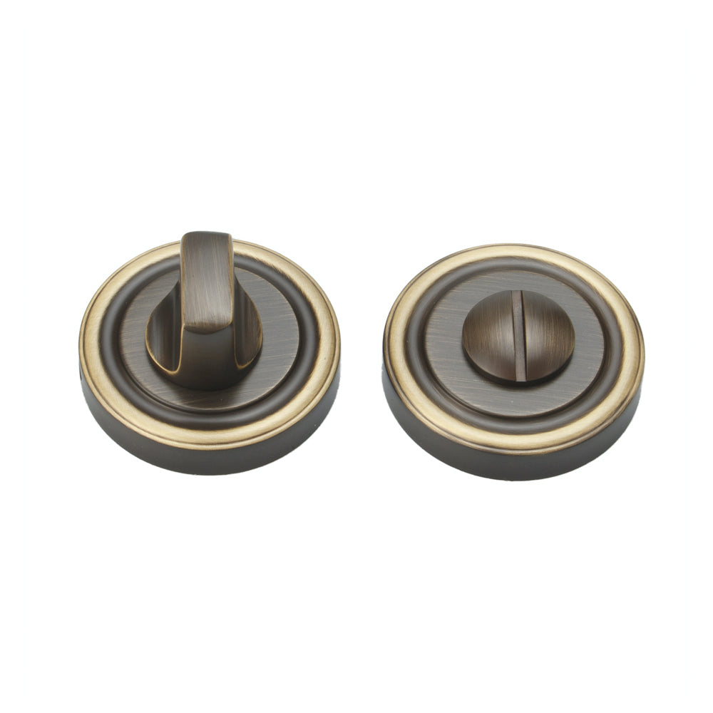 1 Pair of Solid Brass Handles with Lock Body & Thumbturn. 15cm Handle Length. 5.3cm Plate Diameter