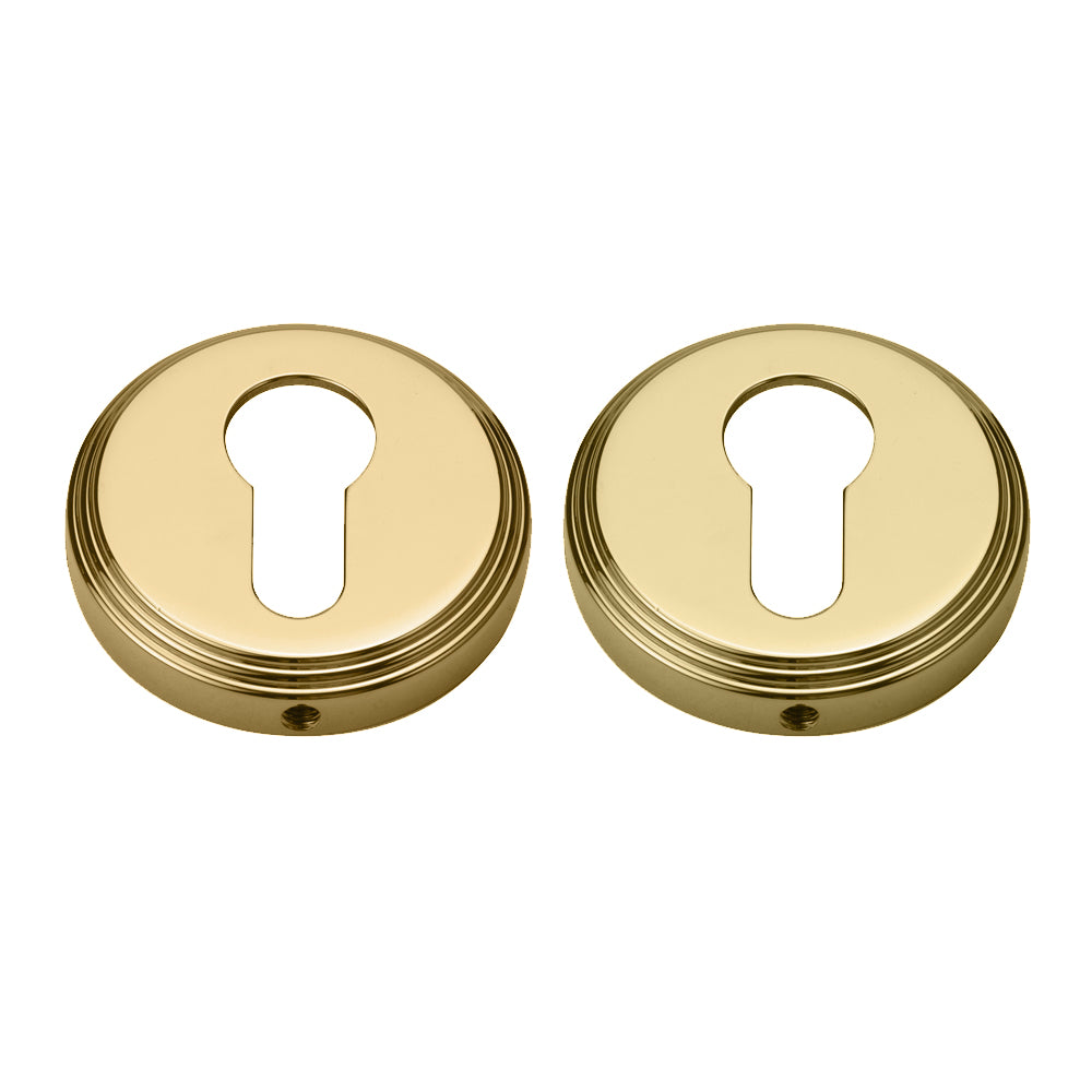 1 Pair of Solid Brass Handles with Lock Body & Key. 14.6cm Handle Length. 5.3cm Plate Diameter