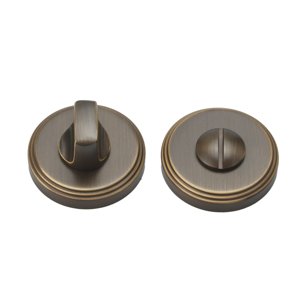 1 Pair of Solid Brass Handles with Lock Body & Thumbturn. 14cm Handle Length. 5.3cm Plate Diameter