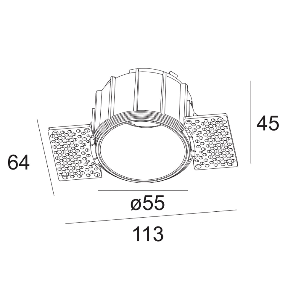 Fixed Trimless Round GU10 Holder Spotlight. Requires 1xGU10 Bulb (bulb not included). Size: Ф55*45mm. IP20