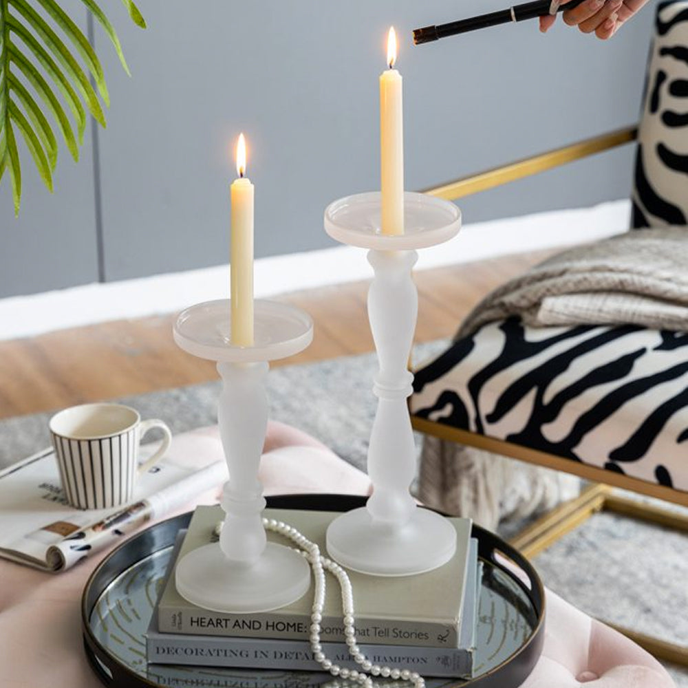 Set of 2 Frosted Glass Candleholders 70460-FRCL-DS-SA