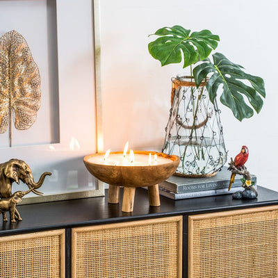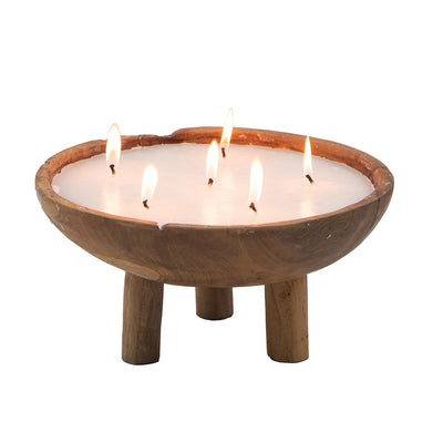 Soy Wax Candle in Teak Wood Bowl with Feet 83469